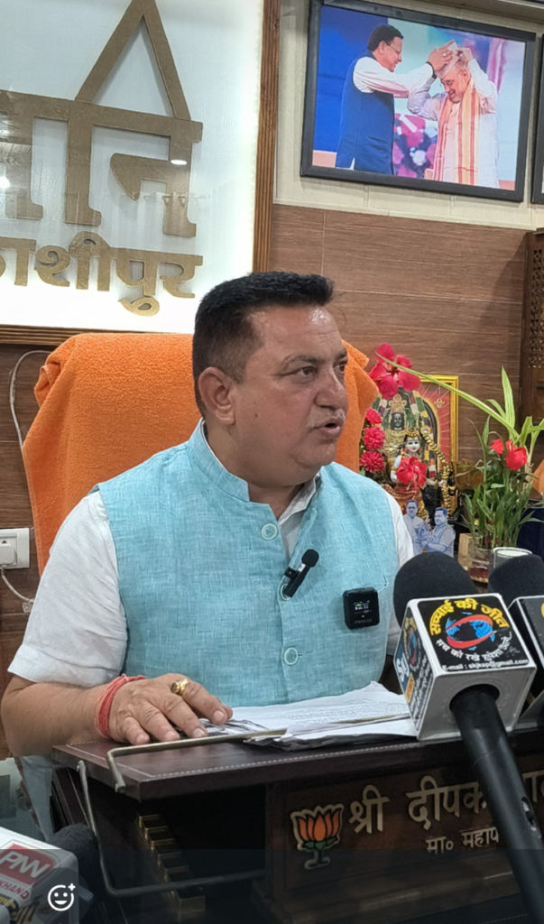 काशीपुर। महापौर दीपक बाली ने नगर निगम कार्यालय में आयोजित प्रेस वार्ता में शहर की कई अहम समस्याओं और विकास योजनाओं पर विस्तार से जानकारी दी। प्रेस वार्ता में मुख्य रूप से रामनगर रोड (एनएच-309) की जर्जर हालत, चैती मेला परिसर के विकास, हाईटेक शौचालयों, ड्रेनेज प्लान, सहित अनेक बिंदुओं पर उन्होंने विस्तार से जानकारी…
